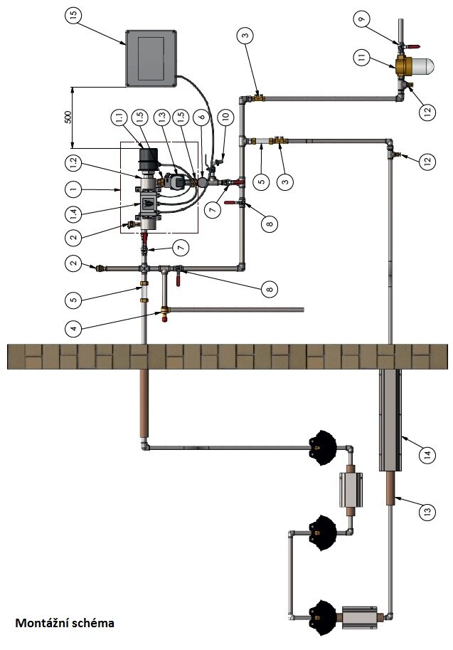 • 1 x průtoková trubice s integrovaným topným tělesem