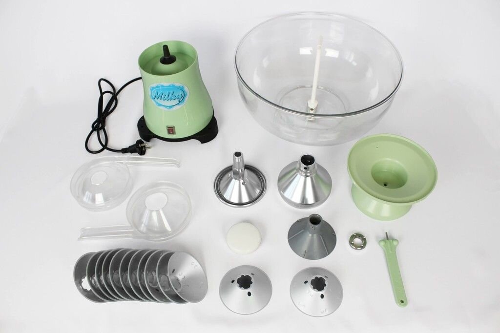 Všechny části, které přicházejí do kontaktu s potravinami, kromě hliníkového bubnu a disků, jsou vyrobeny z vysoce kvalitního polykarbonátu. Proto je tento model levnější než jiné odstředivky na smetanu Milky. Tento polykarbonát je však velmi kvalitní a odolný.