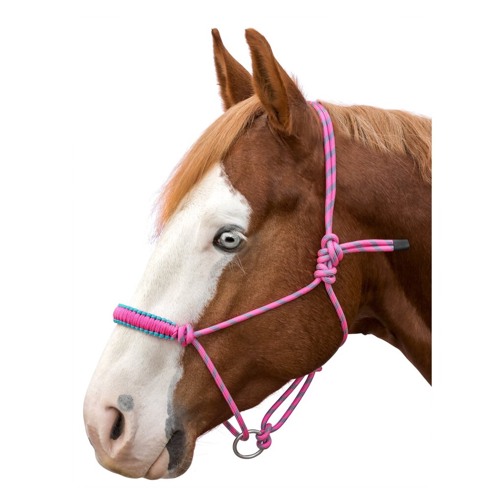 Provazová ohlávka je individuálně nastavitelná, je vyrobena z pevného lanového materiálu s nerezovým kroužkem. Nánosník lze otáčet, což umožní různé barevné kombinace.• nastavitelná provazová ohlávka