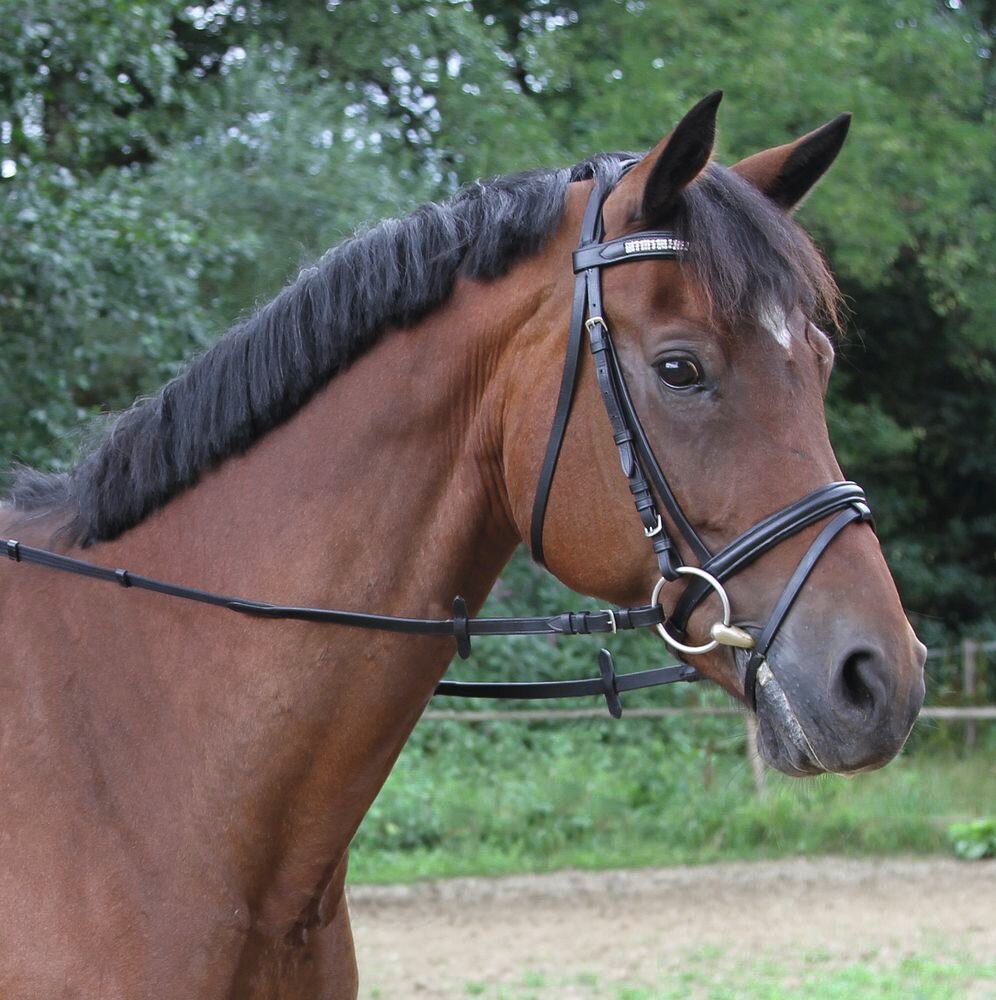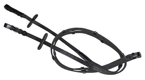 Klasické plátěné/popruhové otěže s koženými zarážkami a martingalovou zarážkou.• s koženými konci a martingalovou zarážkou