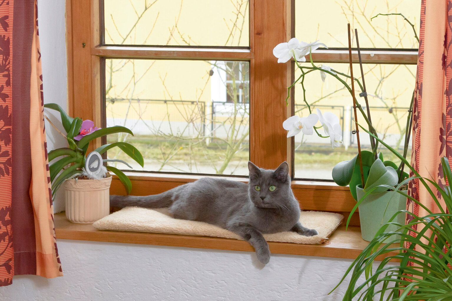 - samoohřevný polštář pro kočky s vnitřní fólií, která odráží tělesné teplo kočky a odpozuje chlad z parapetu