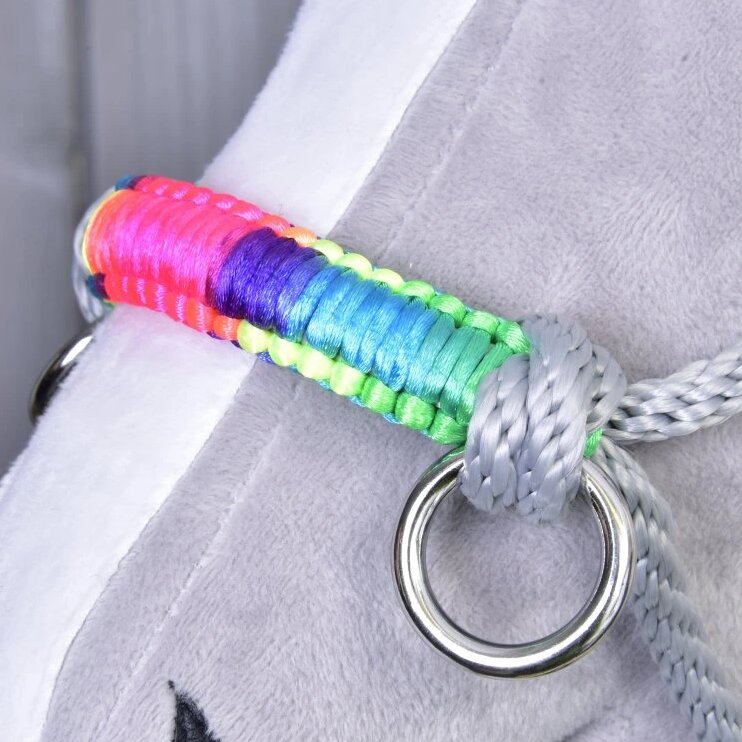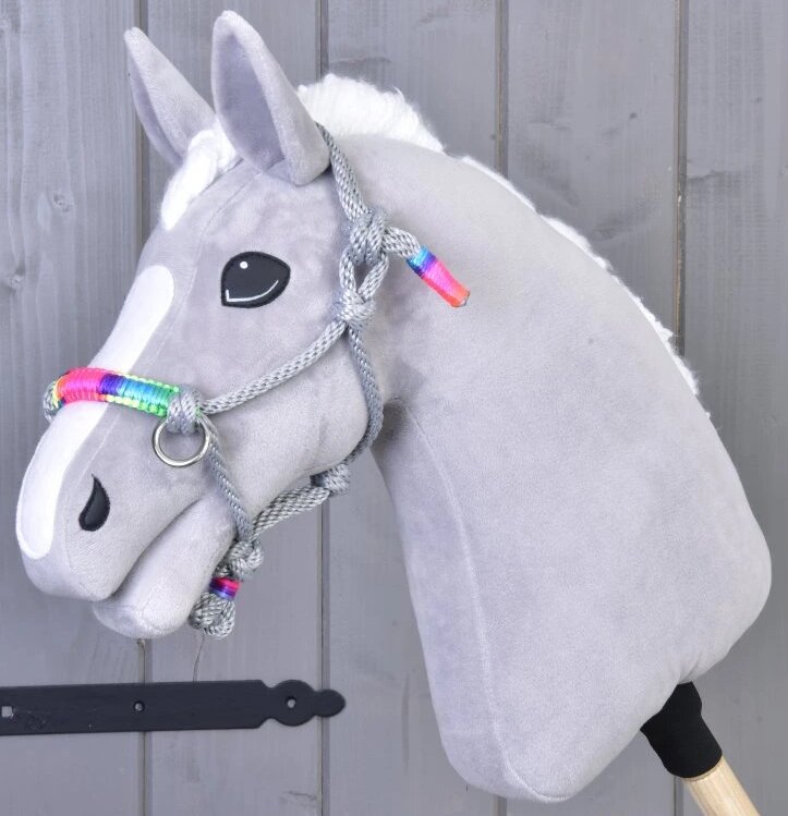 Představujeme ti nádhernou provazovou ohlávku v barvě duhy, která je nejen praktickým pomocníkem při vedení a ustájení tvého Hobby Horse, ale také stylovým doplňkem, který dodá vašemu týmu šmrnc.