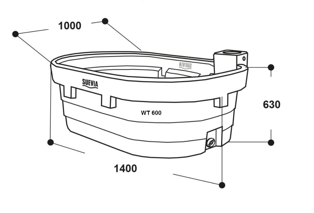 • oválný tvar nádrže umožňuje napájení několika zvířat zároveň a lze také jednoduše naložit na přepravník za auto