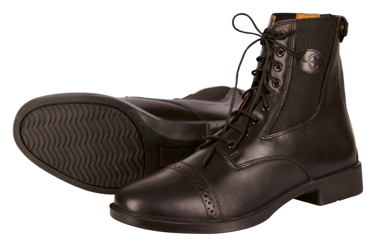 Elegantní nízká jezdecká perka s dekorativním prošitím na špičce, šněrováním na nártu, zipem vzadu a gumovými vsadkami pro pohodlné obutí a vyzutí.