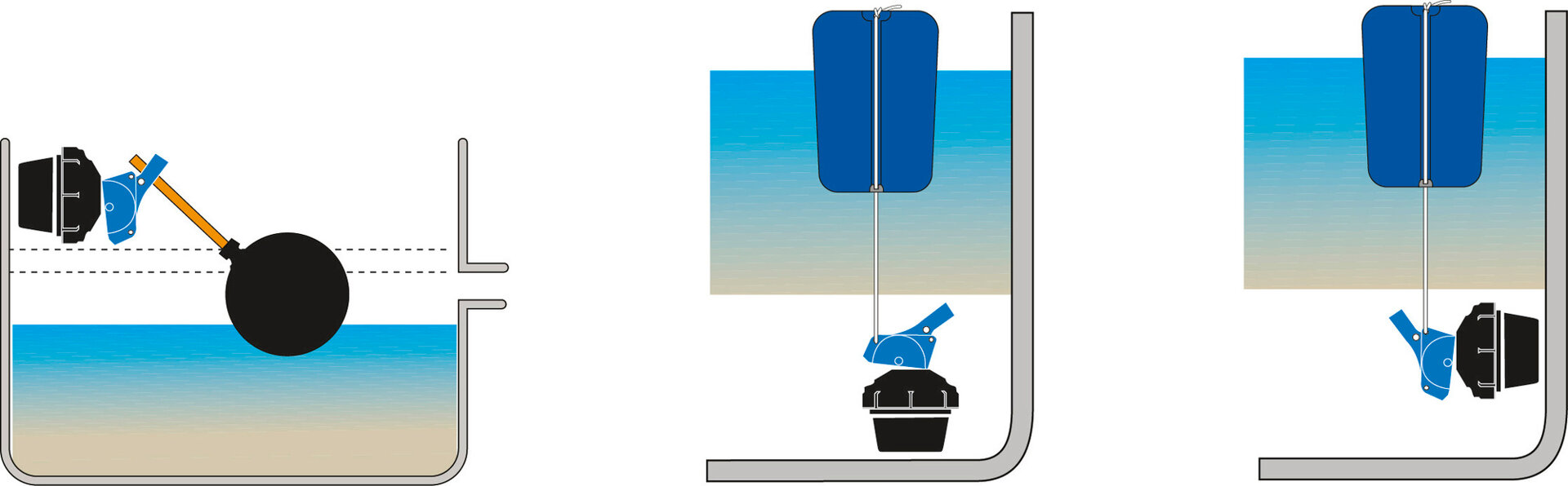 • hladinu vody lze regulovat pomocí výškově nastavitelného ramene plováku
