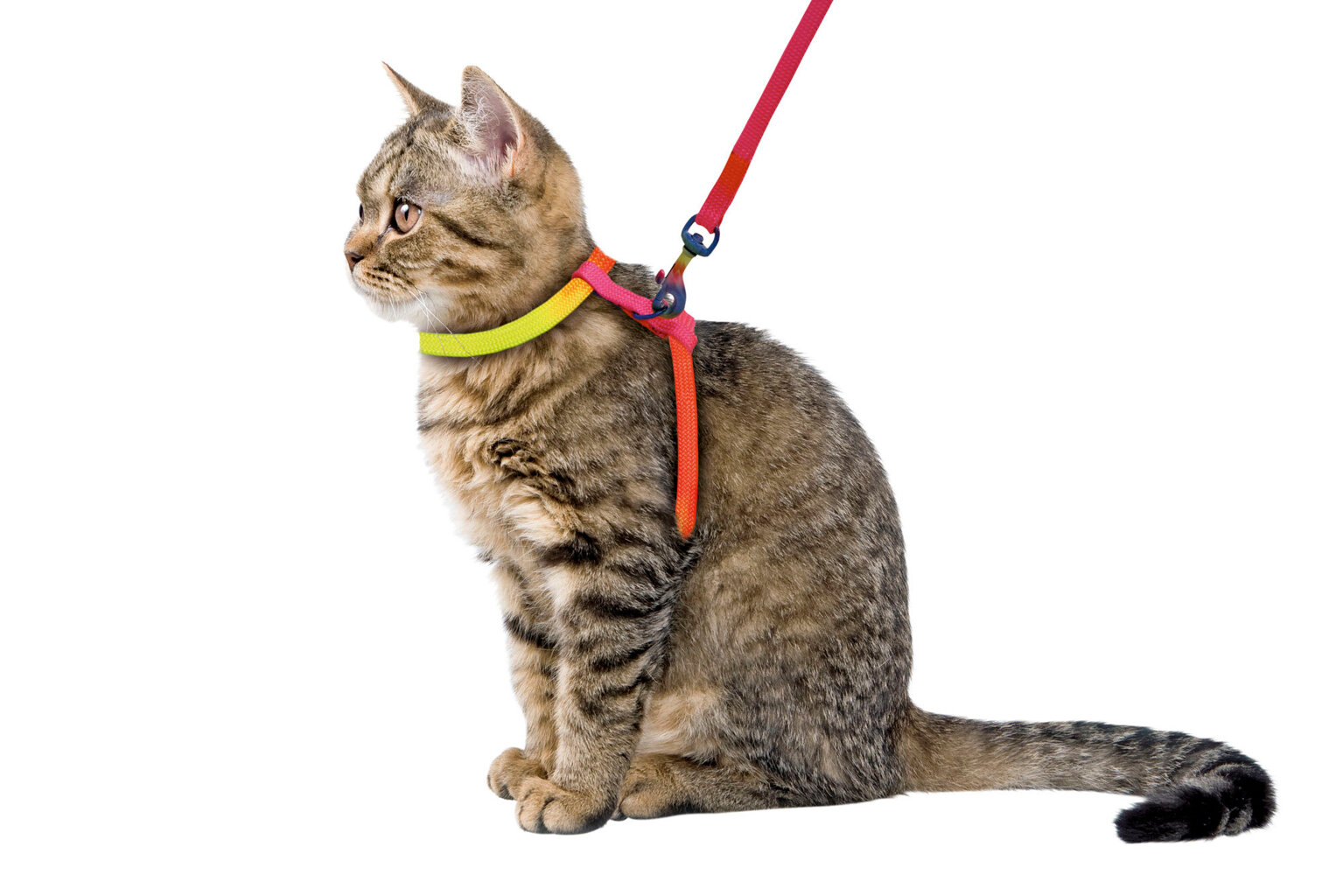 Postroj pro kočky s vodítkem 10 mm/120 cm, duhový