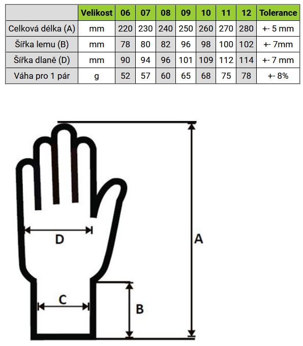 • tloušťka v dlani: 1,1 mm (± 0,2 mm)