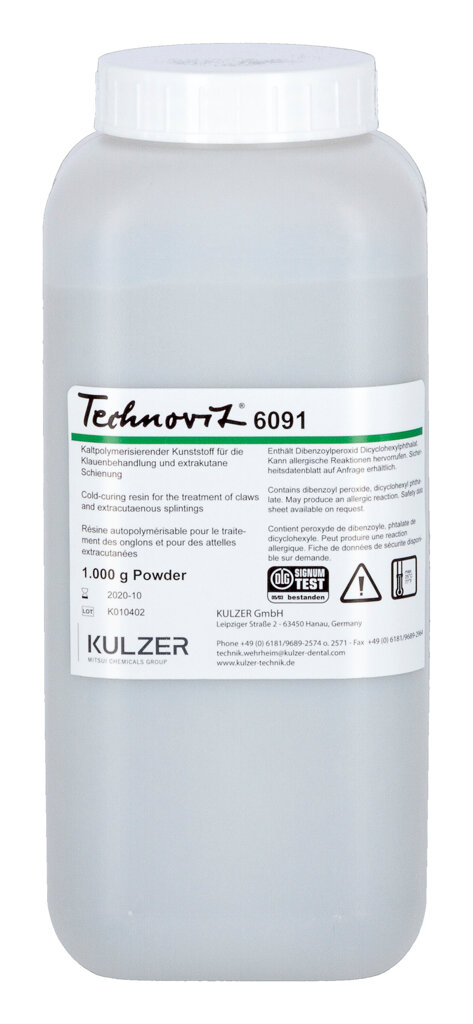 Díky svým zvláštním vlastnostem se Technovit 6091, rychle tuhnoucí plastový materiál, ukázal jako nepostradatelná univerzální pryskyřice používaná ve veterinární medicíně a pro péči a ošetření paznehtů. Významně přispívá ke zkrácení léčby veterinářem během jinak poměrně dlouhých období hojení. V oblasti léčby nabízí následující možné aplikace: pro imobilizaci paznehtů v případě zánětlivých onemocnění, fixaci špiček paznehtů, zakrytí defektů kopyt, trhliny v rohovině, tvarování kopyt a ortopedické ošetření kopyt, zejména u hříbat, protéza).Zákazníci hodnotí