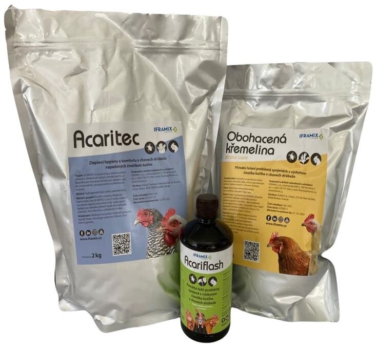 Csomag kis baromfitartók számára a csirkedongókkal kapcsolatos problémák csökkentésére. Három hatékony összetevő a dongók előfordulásának csökkentésére a baromfitelepeken, természetesen káros vegyszerek nélkül. Tartalmazza az Acariflash, az Acaritec és a dúsított kovaföld Mistral Layer termékeket.