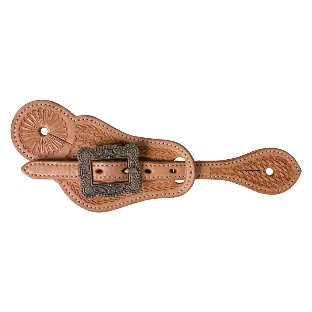 Díky jemně tvarovanému dámskému střihu perfektně padnou na botu a umožňují bezpečné uchycení ostruh. Kovové přezky s decentním westernovým zdobením dodávají řemínkům tradiční a elegantní vzhled.
