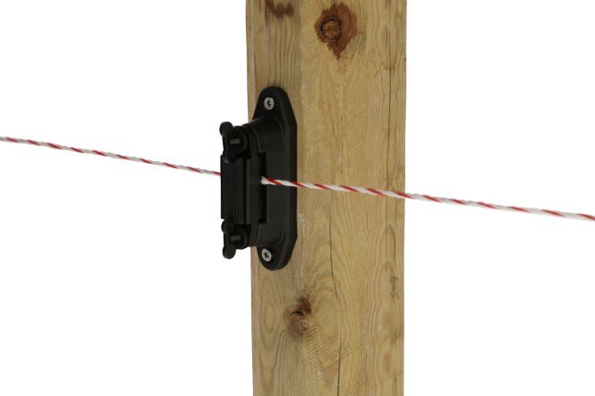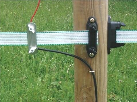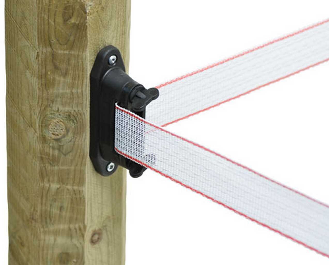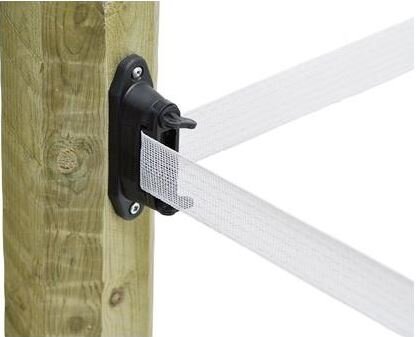 Rohový izolátor na pásku 10-40mmVynikající, multifunkční izolátor především pro pásku do 40 mm, ale i lanka do 6 mm, při řešení ohrad pro koně (paddocky).