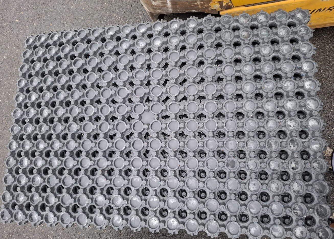Protiskluzový povrch a hrany opatřeny zámky zabraňují posunu jednotlivých rohoží, odolávají močovině a také velkému mechanickému opotřebení.