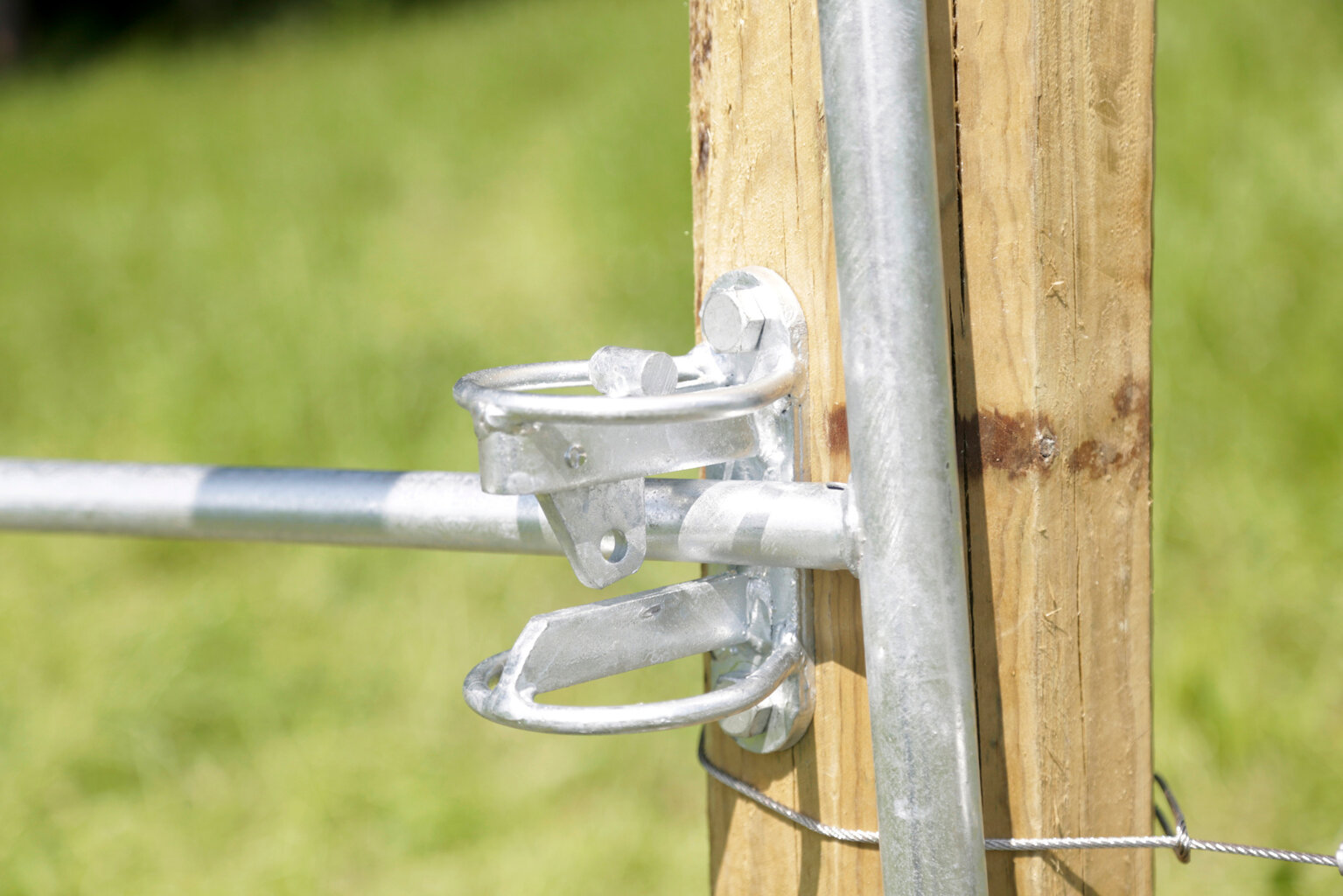 Umožňuje zamknout bránu na pastviny pomocí mosazného visacího zámku (není součástí dodávky)