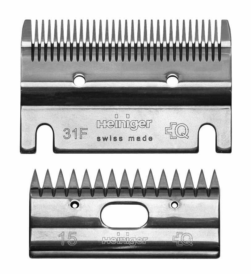 Sada stříhacích nožů Heiniger 31F/15 pro jemné stříhání skotu• střižná výška: 1-2 mm