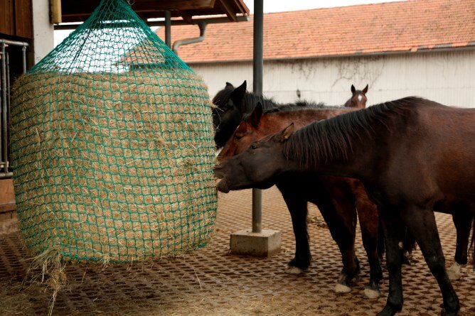 • měkký materiál zabraňuje zranění koně při krmení