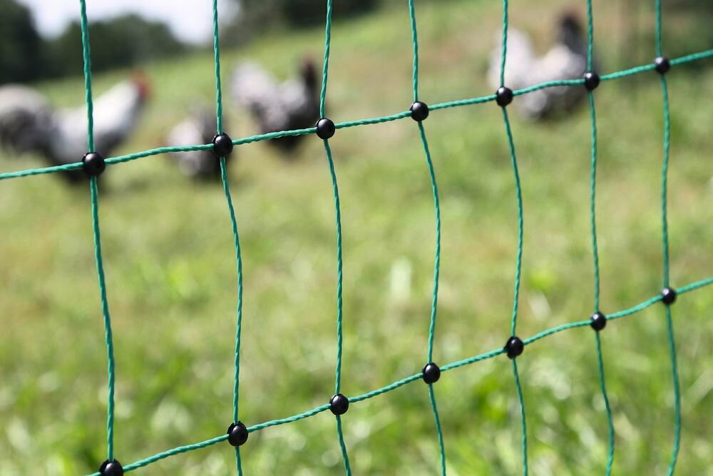 Síť pro drůbež PoultryNet, nevodivá, výška 106 cm, délka 50 m, jednoduchý hrot, zelená