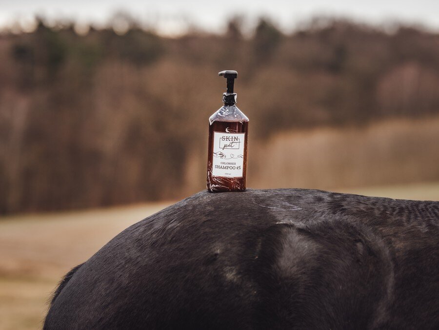 Šampon pro koně, psy a kočky SkinPET® Chlorhex Shampoo 4% je určený především pro krátkodobou akutní péči po operacích, úrazech nebo při infekcích kůže a jiných kožních potížích. Díky šetrnému složení neštípe, nedráždí a nevyvolává alergie. Antiseptické látky snižují mikrobiální zátěž a riziko infekce. Šampon šetrně čistí, eliminuje zápach a navrací srsti i pokožce přirozený lesk. Neobsahuje pěnící složky, které jsou častou příčinou svědění a podráždění citlivé pokožky zvířat. Na rozdíl od konkurenčních výrobků neobsahuje silné parfemace, na které jsou naši čtyřnozí kamarádi velice citliví. Lidské vůně a parfémy jim zkrátka nevoní. Chemické vůně navíc mohou vyvolat podráždění, ekzém či alergickou reakci. Šampony SkinPET® obsahují pouze přirozenou a jemnou vůni Green Tea.