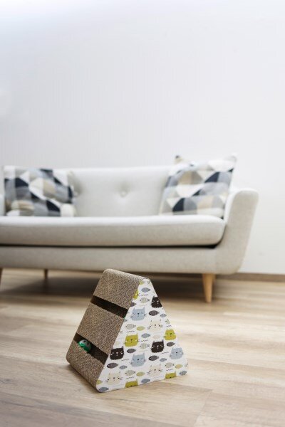 - kartonové škrabadlo pro kočky s plastovými míčky a rolničkami