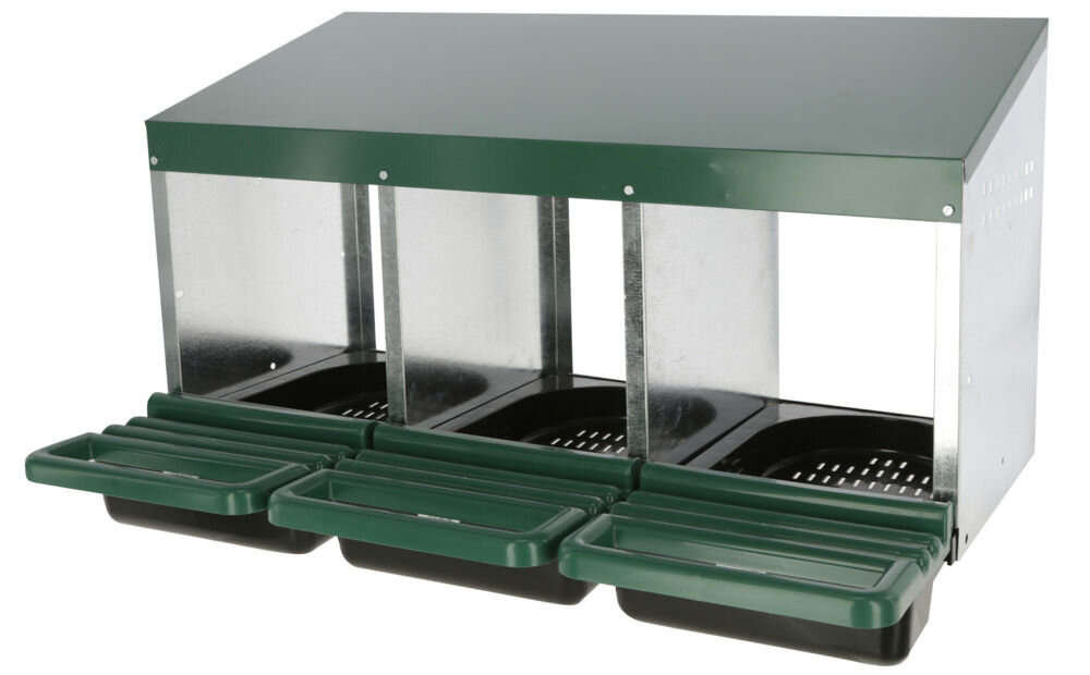 Snáškové hnízdo pro slepice pozinkované trojmístné• pozinkované boční díly a plastové dno