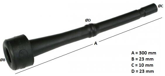 - Průměr otvoru pro struk je 23 mm, otvor pro nasazení na hubici sběrače je 10 mm.