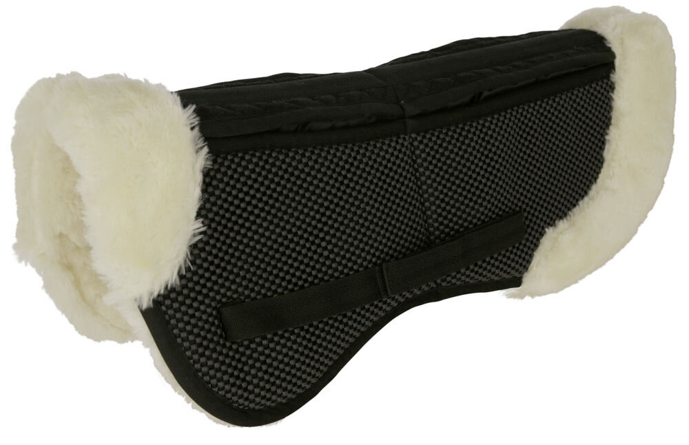 Tlumíci podložka pod sedlo s možností vyměnitelných plstěných podložek pro optimální docpání dle potřeb koně. Vrchní strana je z neklouzavého kuličkového neoprenu , spodní část podložky je z umělého beránku.• kapsa s možností výměny plstěných podložek