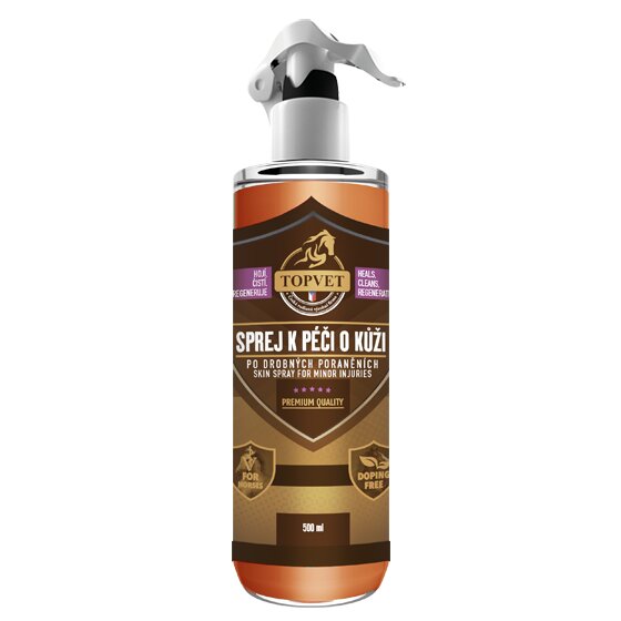 Sprej k péči o kůži po drobných poraněních je určený pro koně. Originální receptura byla vyvinuta k péči o poškozenou tkáň, kterou regeneruje. Bylinná kompozice (tea tree oil, manuka, měsíček, kostival, aloe) vykazuje silný antiseptický a hojivý účinek.