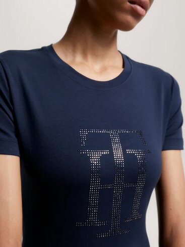 Tričko TOMMY HILFIGER EQUESTRIAN Rhinestone, modrá