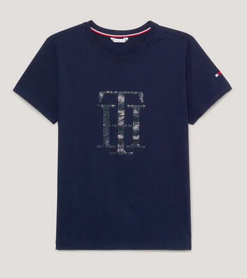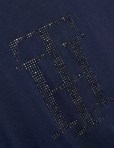 Na hrudi je zdobeno třpytivými kamínky, které jsou vyskládané do monogramu TH a na rukávu je malá TH vlajka.