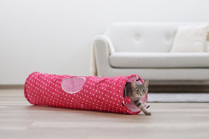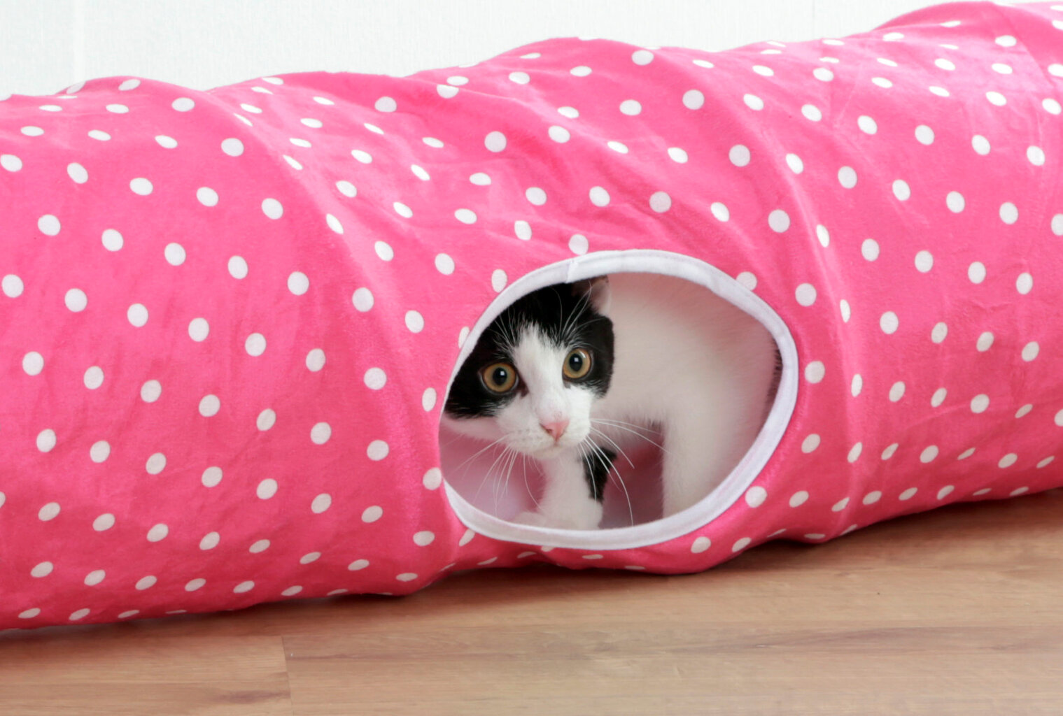 Tunel pro kočky Puntino, 25 cm x 100 cm, růžový