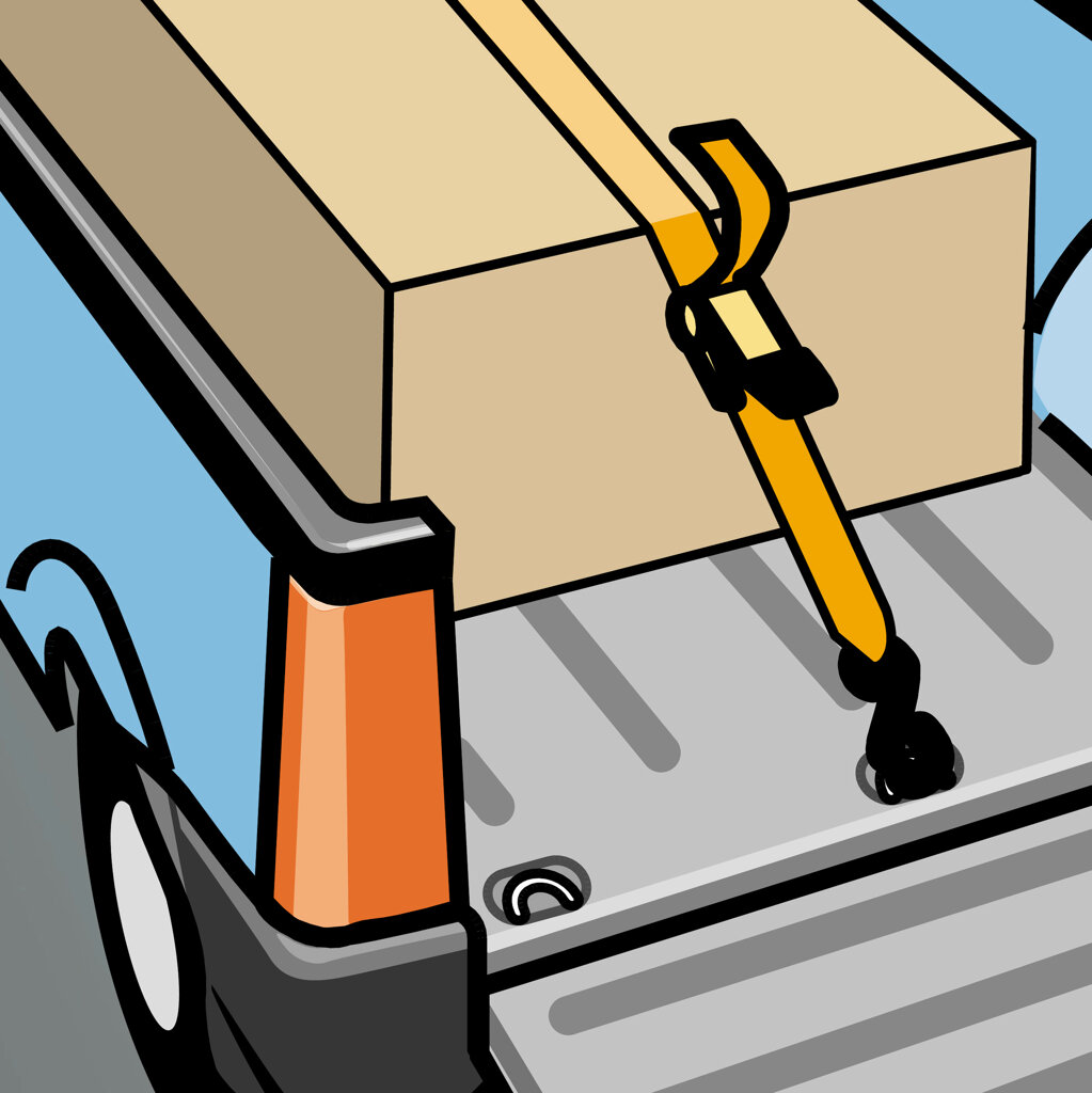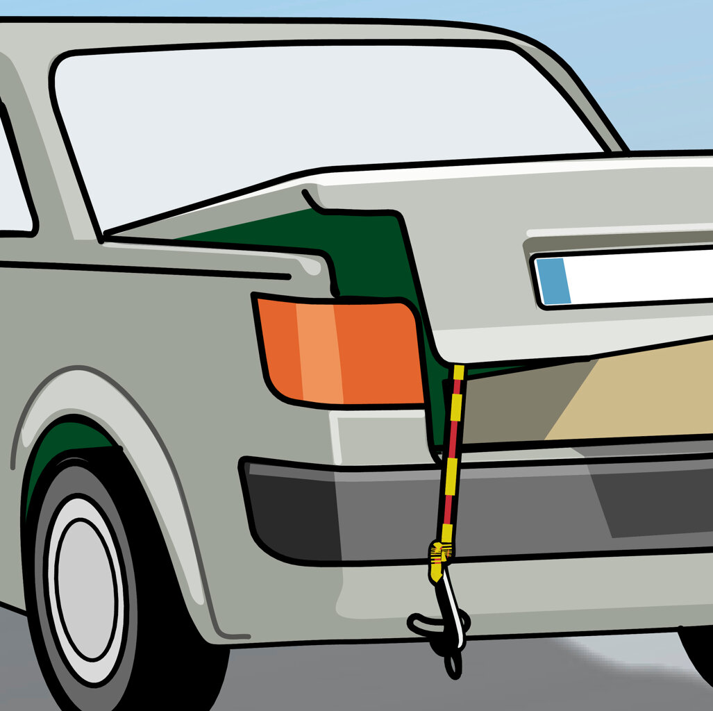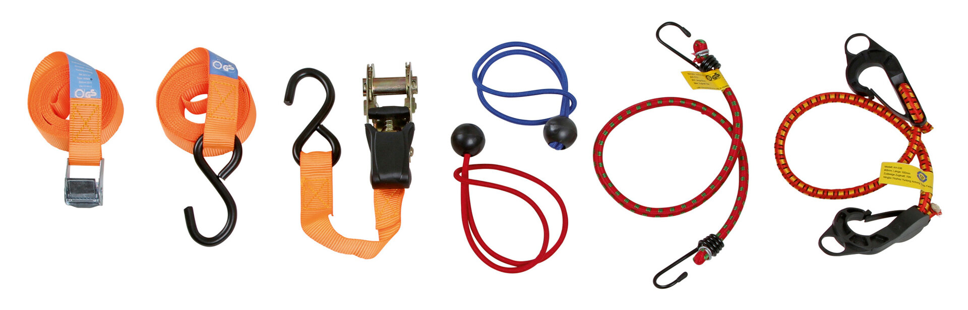 • 4 popruhy na zavazadla se železným hákem, průměr 8,0 mm x 60 cm, LC = 70 N