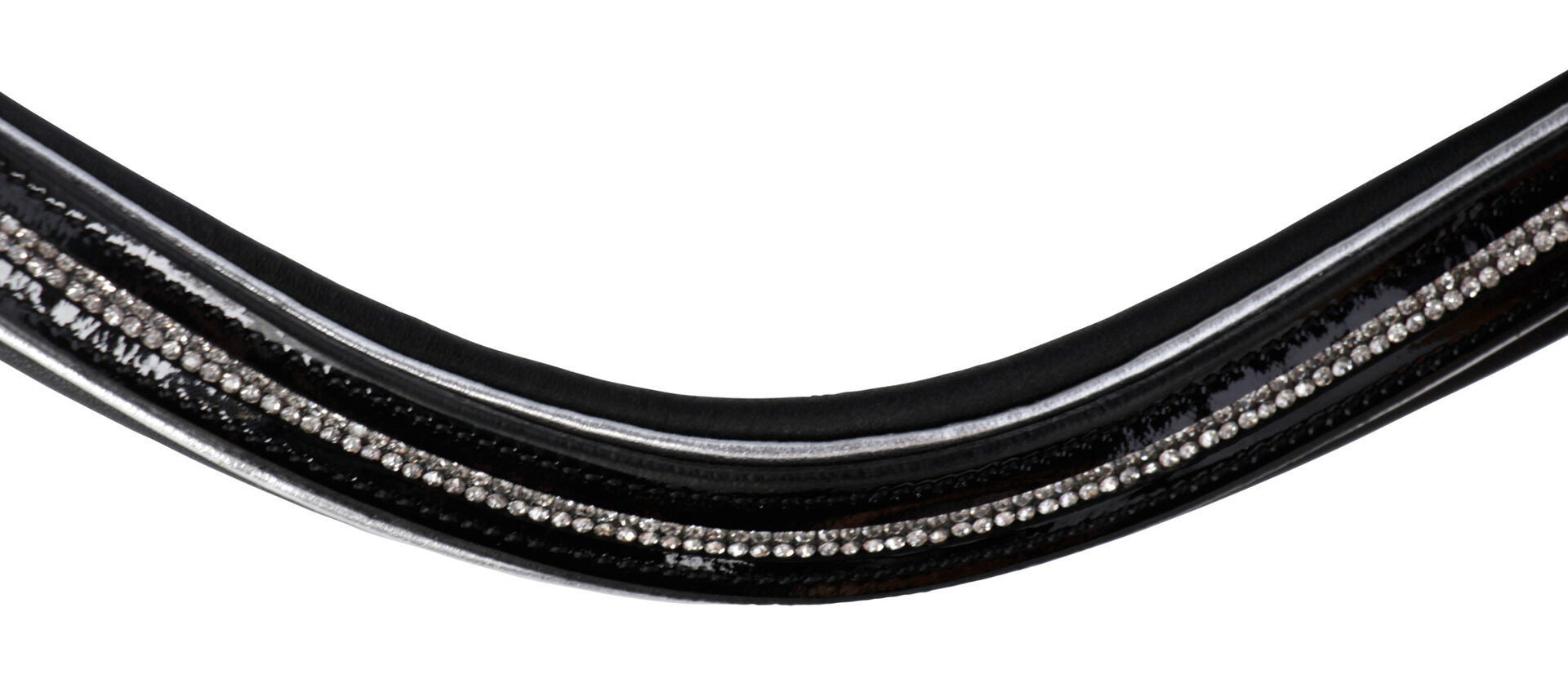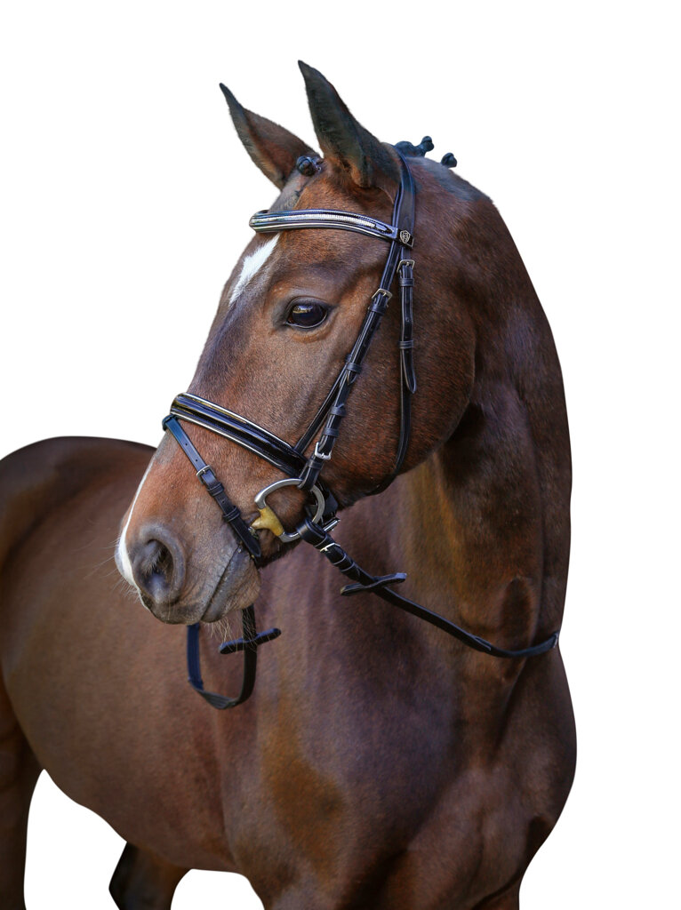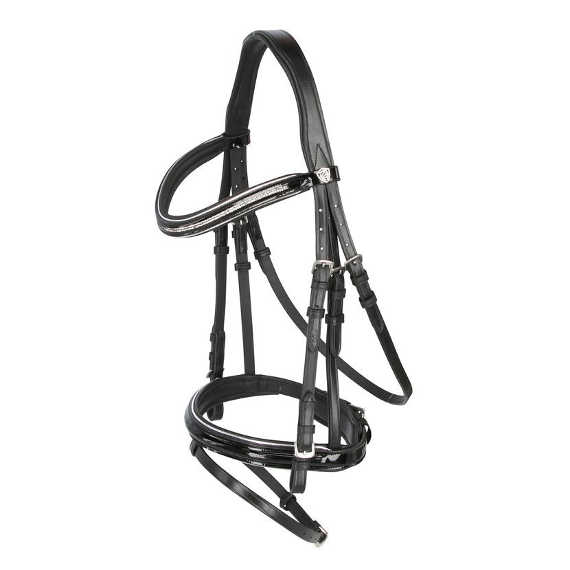 Atraktivní, anatomicky tvarovaná uzdečka s kombinovaným nánosníkem s vysoce kvalitní kůže s měkkým podložením na nánosníku a nátylníku. Čelence a nánosníku dodává lesk lakované kůže.