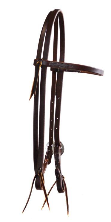 Westernová uzdečka Paul Taylor s klasickou čelenkou z vysoce kvalitní olejované kůže s nerezovým kováním a koncovkami na vázání.!!! Vyjímkou u této uzdečky je, že má pouze jednu přezku na lícnici, ne na obou, jak tomu klasicky bývá !!!