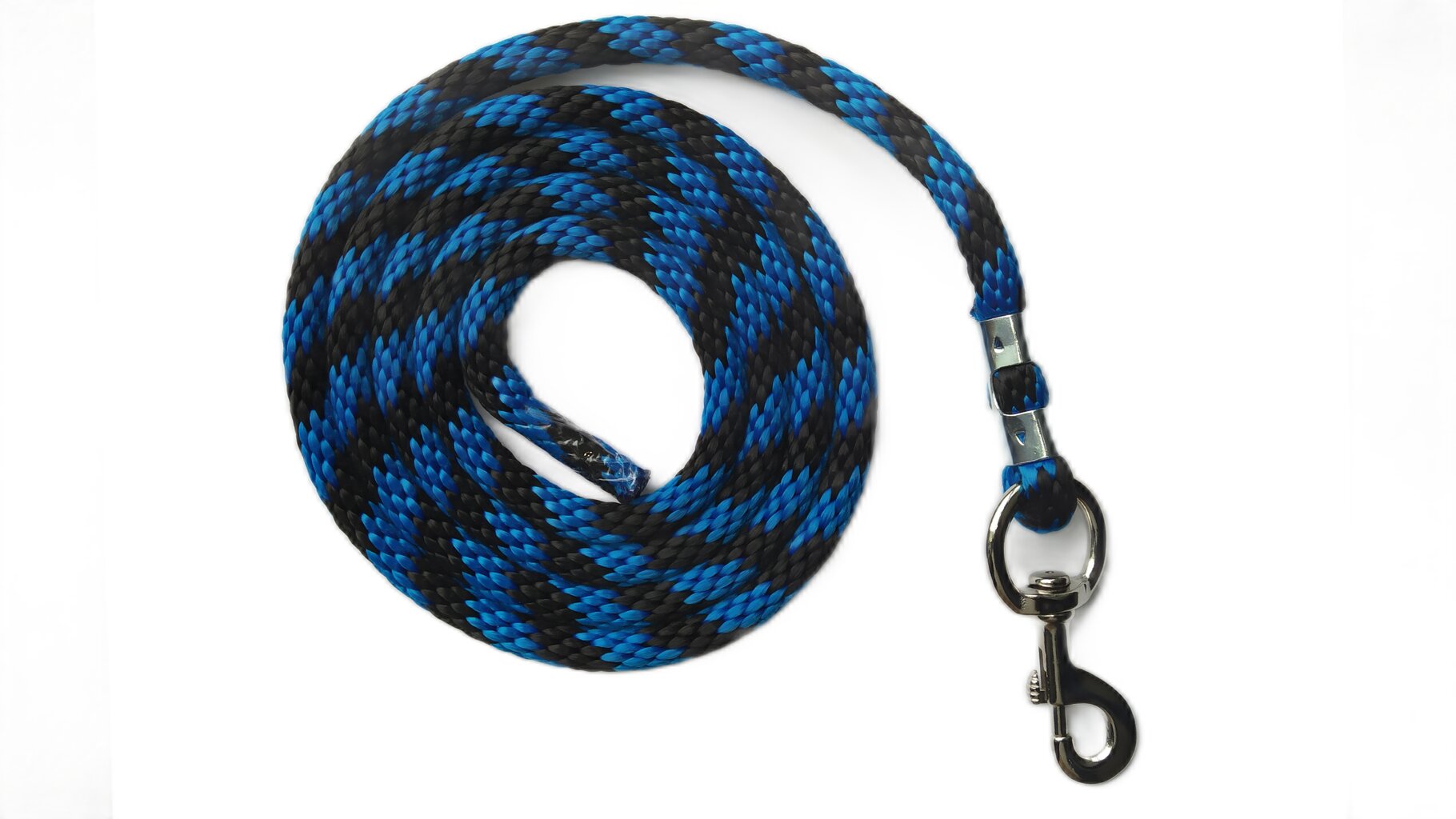 Velmi příjemné kulaté vodítko z příčně spleteného lana s pevnou, niklovou karabinou.