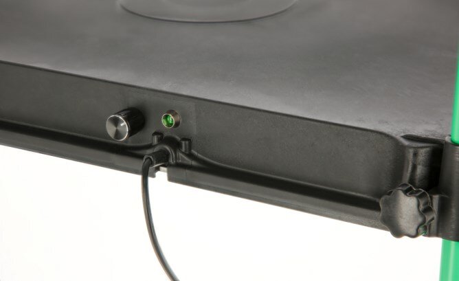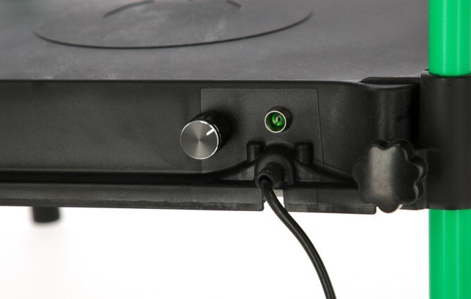 Díky výškově nastavitelným nohám se topná deska snadno přizpůsobí velikosti kuřat.
