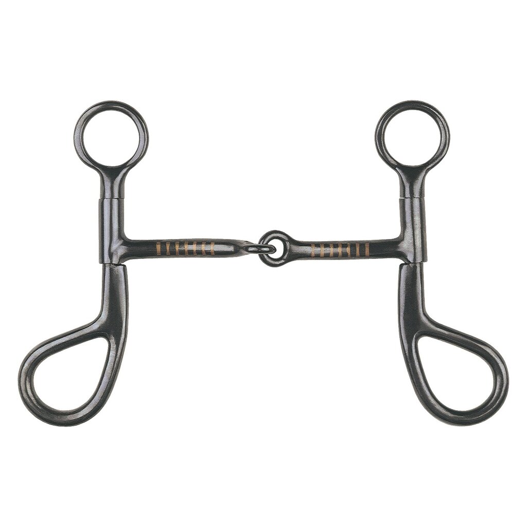 Jemná baby páka s krátkými rameny z čené oceli s integrovanými měděnými proužky pro lepší slinění koně.