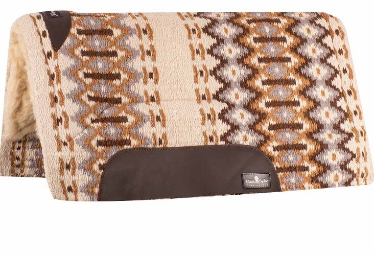 Kvalitní deka pod westernové sedlo Classic Equine se 100% merino vlnou vespod, 100% vlněnou svrchní částí, vnitřek deky je z vlněné plsti o tloušťce cca 2,22 cm, výkroj v oblasti fendrů pro lepší kontakt s koněm. Deka výborně absorbuje nárazy a rozkládá tlak.• westernová deka se 100 % vlny nahoře