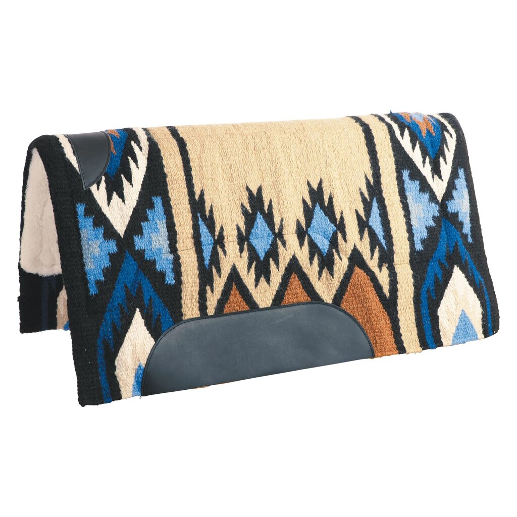 Anatomicky tvarovaná deka pod westernové sedlo, vespod s umělým beránkem, zesílením po stranách a na kohoutku provou kůží a vlněným svrchním materiálem.