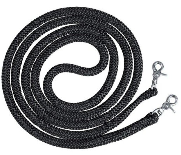 Westernové kulaté, nedělené pletené otěže s karabinkami na koncích, které umožní rychlé zapínání a rozepínání. Jsou vyrobeny ze stabilního polypropylenu.