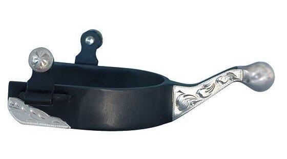 Westernové jemné ostruhy zakončené kuličkou, zdobeny německým gravírovaným stříbrem.Délka krčku: 6,5 cm