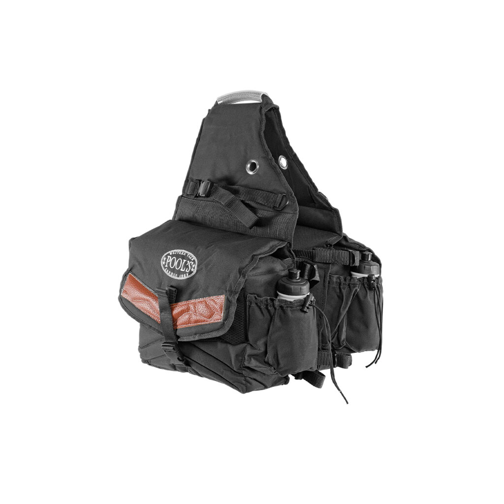 Kvalitní dvoudílné brašny na westernové sedlo jsou vyrobeny z vysoce pevného a odolného nylonového materiálu. Na obou stranách brašny je kapsa s plastovou lahví s obsahem cca 0,5l . Uvnitř jedné kapsy je na stěně našit síťovaný materiál, který tvoří další přihrádku , v druhé kapse uvnitř jsou našity 2 přihrádky ze stejného materiálu jako jsou brašny . Na boku jedné kapsy je našita kapsička na mobil se zapínáním na suchý zip. Vchod do obou brašen je chráněn klopou před vypadnutím obsahu ven.• dvoudílná brašna