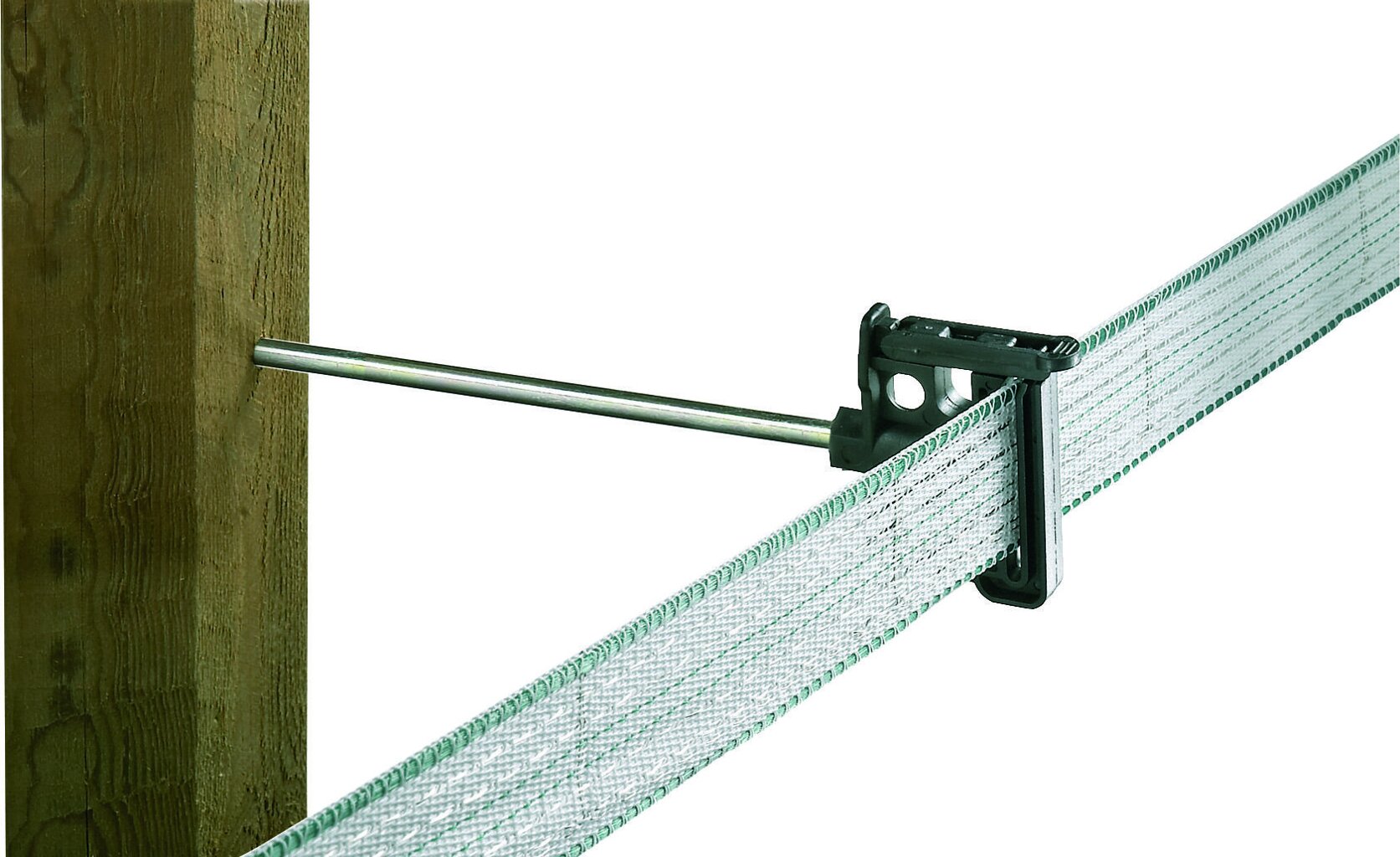 Vynikající prostředek ke zvýšení výšky ohrady jen u pevných dřevěných ohrad, kdy se tento izolátor instaluje na sloupek směrem vzhůru.