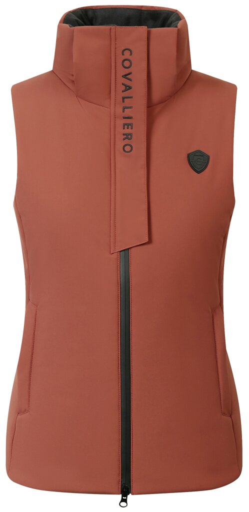 Tato stylová dámská vesta od značky Covalliero spojuje sportovní design s elegancí. Díky luxusní výplni a vysokému límci udrží tělo v teple, aniž by omezovala v pohybu. Ideální volba pro jezdecké i volnočasové aktivity.