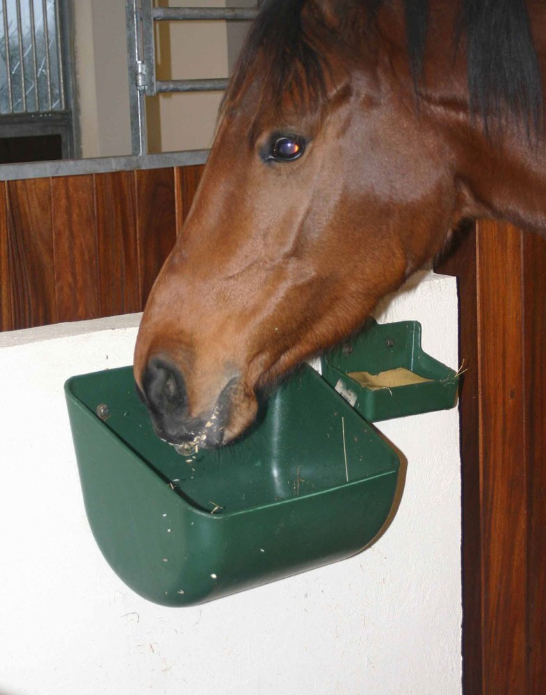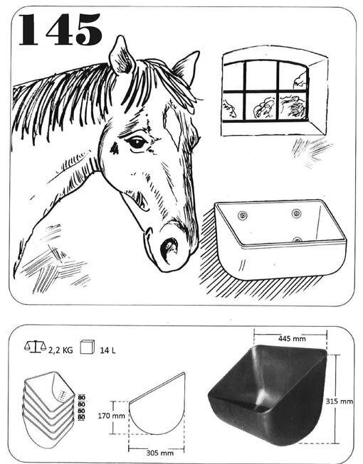 OK PLAST krmný žlab pro koně široký, model 145 o objemu 14 litrů je určen pro krmení koní jádrem v boxech i výbězích. Instaluje se na stěnu v boxu.