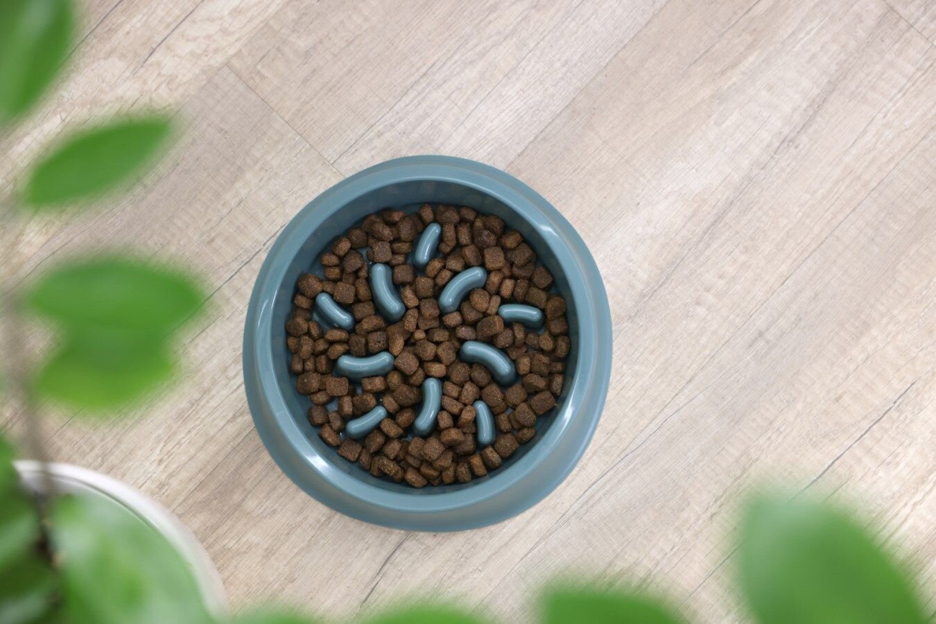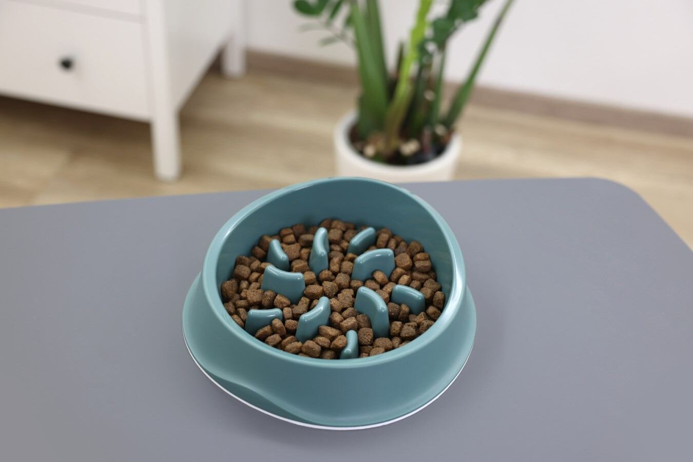 - speciální design misky na krmení určený pro psy, kteří hltají potravu